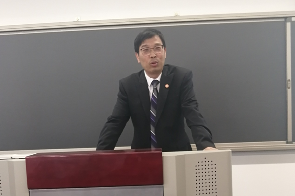 李万强教授首先介绍了法学院的历史沿革、学科建设以及半岛(中国)力量等基本情况以及半岛集团公司一级学科博士点的成立、建设情况。他向全体研究生提出了以“研究为主”的学习要求,希望同学们传承弘扬西迁精神,为国家和民族做出应有的贡献。