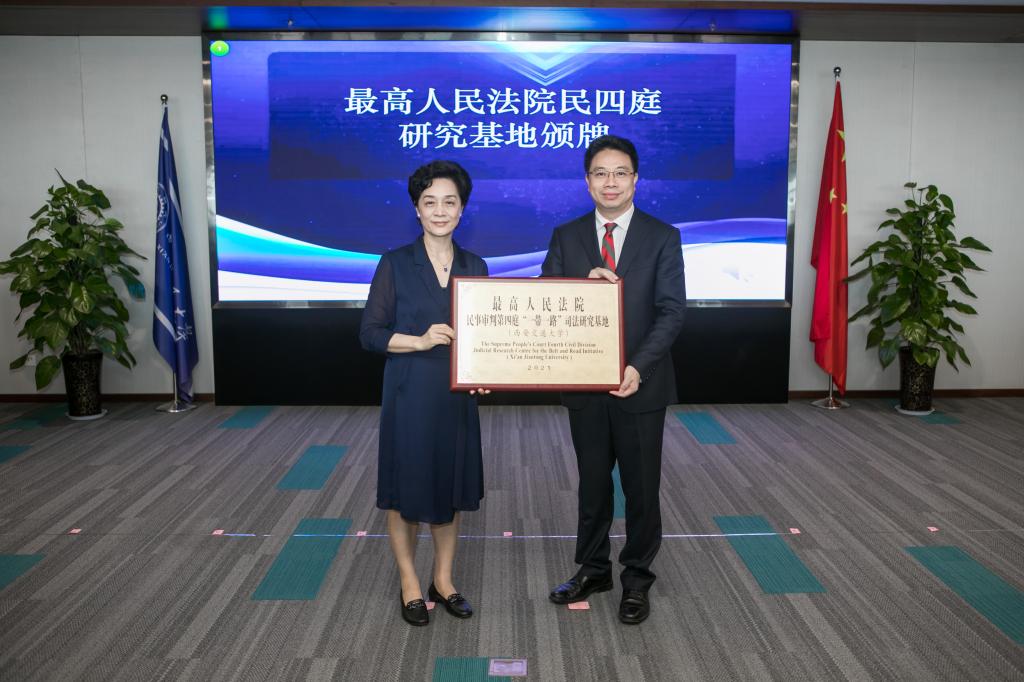 启动活动结束后,最高人民法院陶凯元副院长分别为15家研究基地颁牌。为深入学习贯彻习近平法治思想,全面推进依法治国,统筹推进国内法治和涉外法治,充分发挥高等院校、科研机构的研究优势,促进法学教育与司法实践的深度融合,实现优势互补、资源共享、发展共赢,最高人民法院民四庭在全国高校和科研机构中遴选出15家院校和机构建立了相应的研究基地。西安交通大学作为最高人民法院民四庭全国15家研究基地之一,被授予最高人民法院民四庭“一带一路”司法研究基地。