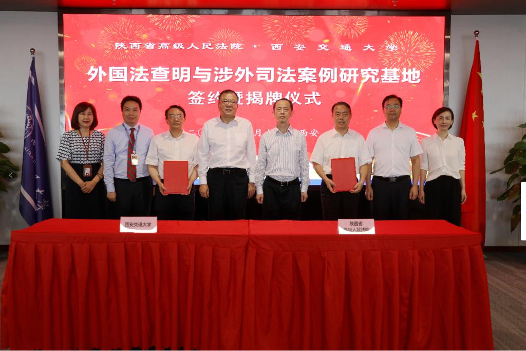 7月9日上午,陕西省高级人民法院—西安交通大学外国法查明与涉外司法案例研究基地签约暨揭牌仪式在中国西部科技创新港涵英楼举行。陕西省高级人民法院党组书记、院长李智,西安交通大学党委书记卢建军共同为研究基地揭牌。陕西省高级人民法院副院长巩富文、西安交通大学副校长席光签署共建协议。