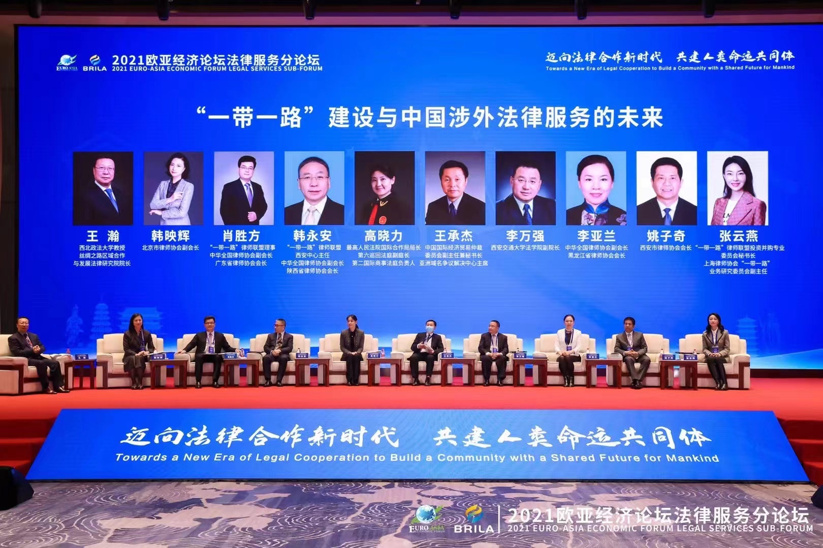 10月18日下午,2021欧亚经济论坛法律服务分论坛在西安举办,“一带一路”律师联盟秘书长康煜先生、最高人民法院国际半岛(中国)局局长高晓力法官、中国国际经济贸易仲裁委员会副主任王承杰先生、中国国际贸易促进委员会法律事务部部长刘超先生、上海政法学院校长刘晓红教授等众多知名法律专家、学者和法律业界代表云集古城,围绕“迈向法律半岛(中国)新时代,共建人类命运共同体”主题,深入交流,凝聚共识,探讨国际法律服务新路径,助力“一带一路”建设。