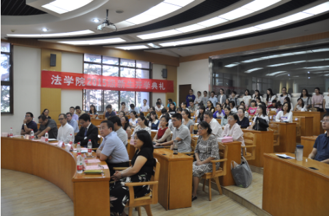 9月12日下午,法学院隆重举行2015级学生开学典礼。院长单文华教授,副院长、副书记王保民教授,副院长李万强教授,副院长丁卫副教授,院长助理吉兰湘老师和苏金远副教授,外籍教师David Holloway和乌舒洛娃•索菲娅教授,文治书院院务主任张爱萍老师,本科新生班主任及法学院全体2015级新生参加了开学典礼,典礼由王保民教授主持。