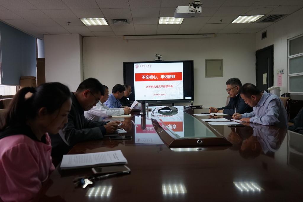 10月11日下午,法学院中心组开展“不忘初心、牢记使命”主题教育读书会,围绕“敢于担当作为,建设一流学科”的主题开展学习交流。学校第十二指导组组长康金勇、联络员贾海涛出席会议,法学院中心组成员参加会议。