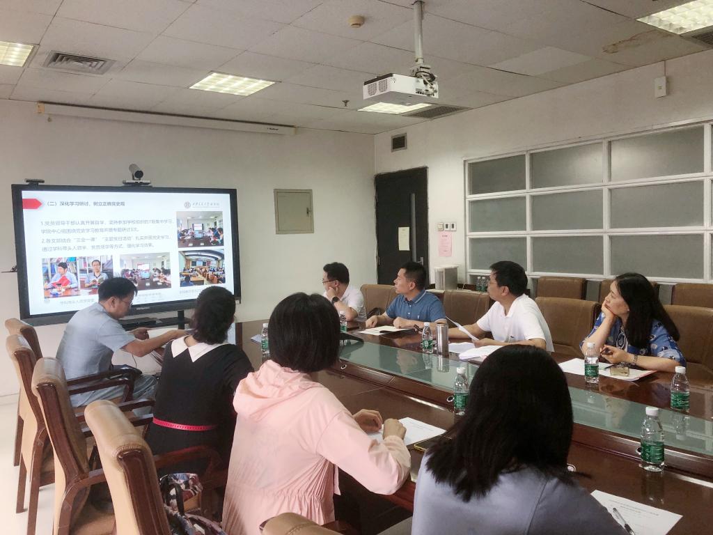 党总支书记王保民首先向别朝红常委介绍了法学院党总支的基本情况,并介绍了法学院在党史学习教育中开展的多种形式的党史学习教育活动、 在“我为群众办实事”方面学院针对师生在工作学习就业生活中急难愁盼问题的解决情况。