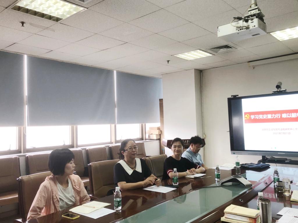 7月21日下午,法学院立法与党内法规研究中心党支部举办“学习党史重力行,唯以韶华答时代”主题党日活动,校党委常委、学科办主任别朝红教授应邀参加,法学院党总支书记王保民教授、法学院副院长丁卫副教授、党总支委员吉兰湘老师到会参加,组织部石桥老师应邀列席会议。会议由支部书记杜军强副教授主持,支部老师和博士生党员参加了会议。