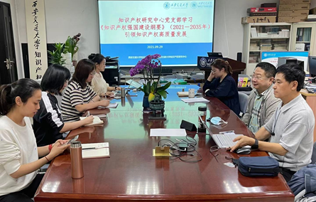随后,研究中心主任马治国教授和孙那副教授领学了《知识产权强国建设纲要(2021—2035年)》(以下简称纲要)。马治国教授详细地对《纲要》内容进行了解读,尤其是针对《纲要》部署的六大重点任务,提出中心和博士生未来研究要注意和《纲要》内容相结合、切合国家未来发展需求。他还重点介绍了《纲要》中提到的与高校有关的两个重点问题,一是提出“扩大科研机构和高校知识产权处置自主权,推动知识产权转移转化”,指出高校科技成果转化离不开知识产权服务支持,未来中心应加强这方面的工作部署;二是针对《纲要》提出的“营造更有活力的知识产权人才发展环境,支持学位授权自主审核高校自主设立知识产权一级学科,推进论证设置知识产权专业学位,加强相关高校二级知识产权学院建设”等内容,强调未来中心应在知识产权学科建设上面部署发力,积极参加相关研讨会、申报科研项目和教改项目,落实《纲要》精神,为国家优秀知识产权人才培养搭建平台、贡献力量。