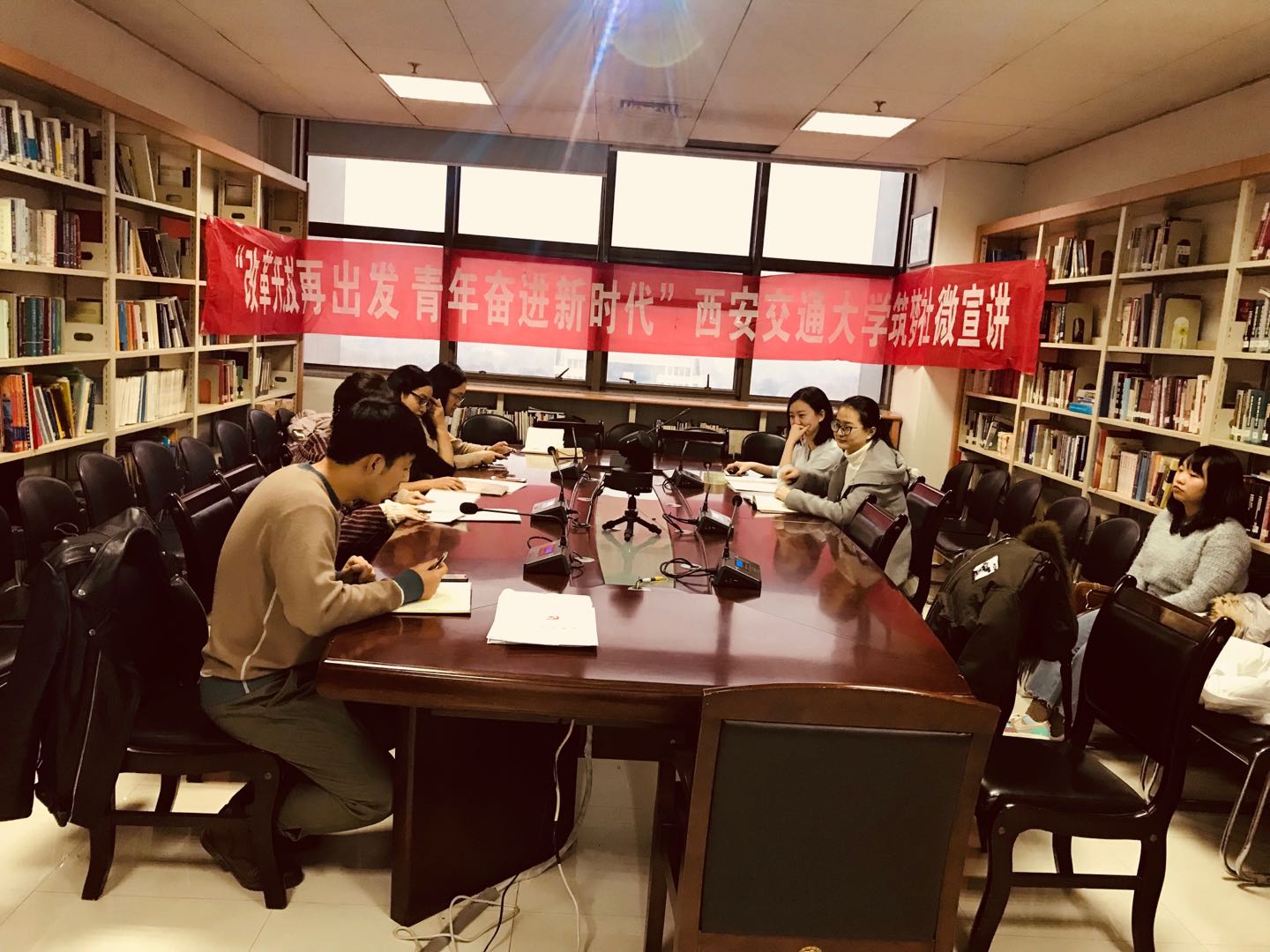 12月5日下午,法学院硕7155(三年制)党支部在主E1004会议室召开支部党员大会,此次邀请西安交通大学筑梦社成员王怡文、高镜雅、黄佳慧为支部成员开展改革开放专题微宣讲。法学院副院长李万强教授参加了此次活动。