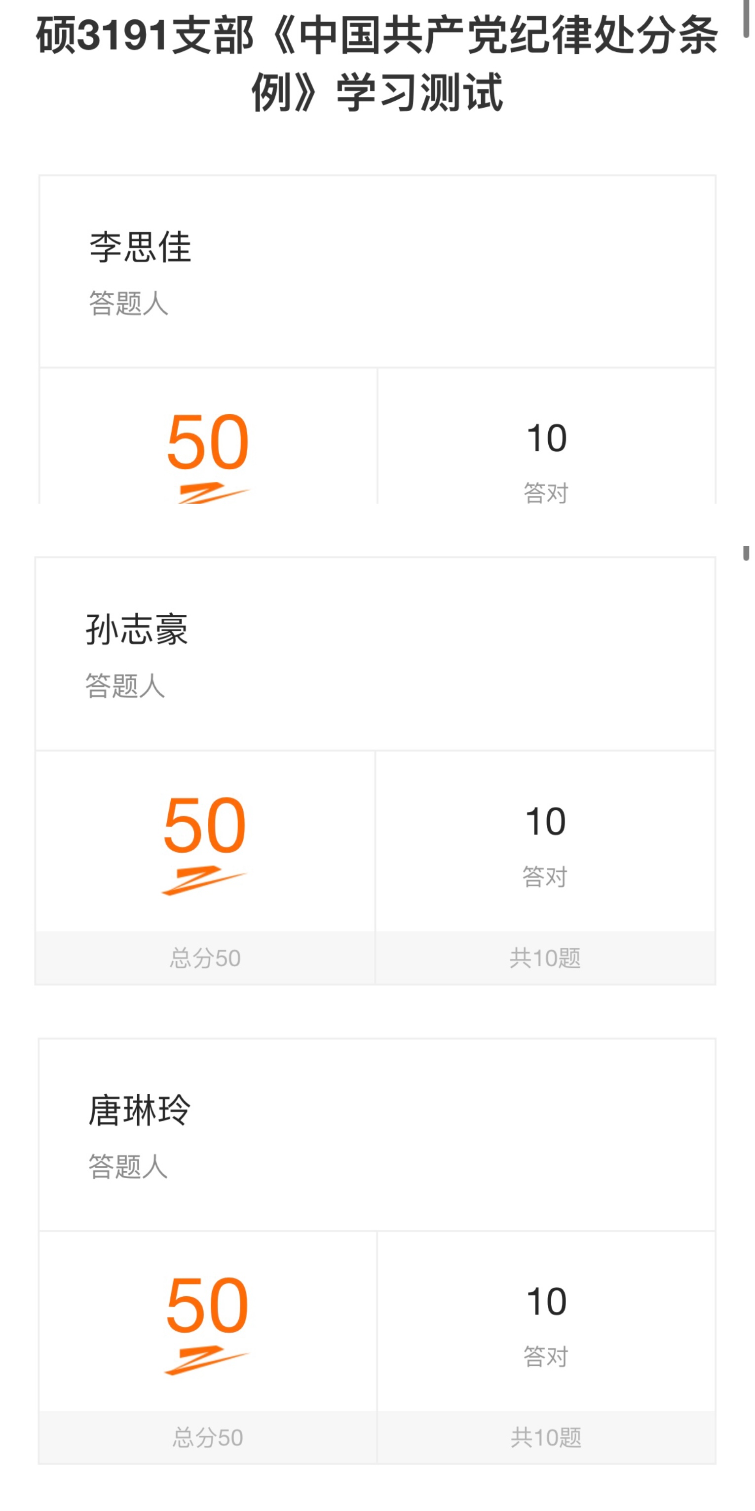 首先,党支部书记刘芮言介绍了《条例》的修订情况。新修订的《中国共产党纪律处分条例》在总结实践经验基础上,与时俱进完善纪律规范,与2018年《条例》相比,新增16条,修改76条,进一步扎紧织密制度笼子,为全面加强党的纪律建设提供了重要遵循。之后,刘芮言带领支部内其他同志对《条例》第二章违纪与纪律处分部分进行了解读学习,并观看了党风党纪警示教育片《心渊》。最后,为巩固学习效果,支部通过问卷星进行了《中国共产党纪律处分条例》知识答题测试,党支部内各位学生党员测试结果优良,本次党日活动学习成果显著。