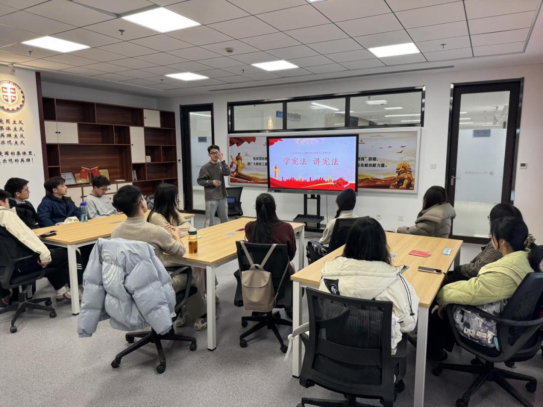 活动在全体人员齐唱国歌的庄严氛围中拉开帷幕。在国歌的旋律中,参会党员共同回顾宪法发展的伟大历程,深切感受到宪法精神的力量和法治国家建设的伟大意义。硕4199班党支部书记刘皓阳向大家介绍了宪法的概念、性质及特征。宪法地位和作用不可替代,它保障了人民的基本权利,规范了国家机关的运作,在法治国家建设的规划中居于核心地位。
