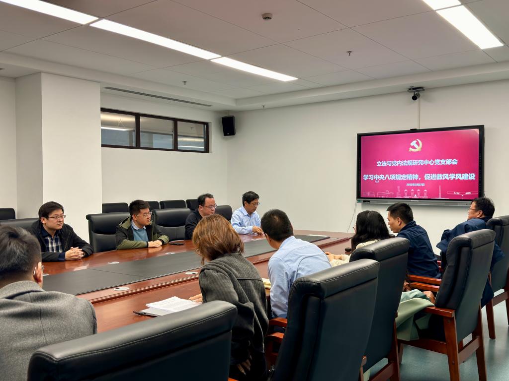 3月27日,立法与党内法规研究中心党支部在创新港5-3079会议室召开了主题为“学习中央八项规定精神,促进教风学风建设”的支部会议。本次会议由中心支部书记杜军强主持,法学院党委书记王保民教授、支部教师和博士生党员参加了会议。