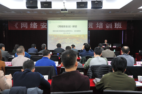 2017年3月23日至24日,由陕西省《网络安全法》宣贯培训班在渭南市成功举办。西安交通大学信息安全法律研究中心王玥副教授应邀作为此次培训的三位主讲之一,为学员全面深入解读了《网络安全法》。陕西省委网信办副主任黄永宏、陕西省委网信办副巡视员王创、渭南市委常委、宣传部长王玉娥等领导出席活动。