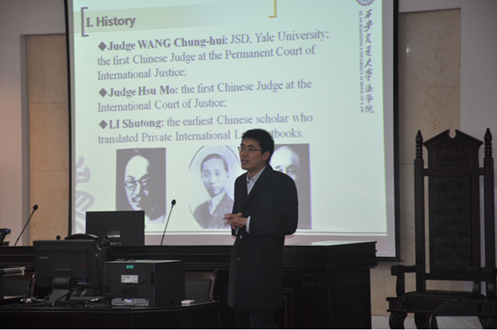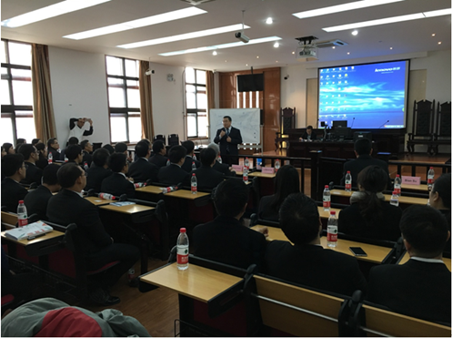 授课活动在法学院模拟法庭举行。课前,副院长李万强教授、院长助理张生副教授向代表团表示热烈欢迎,并向代表团介绍了我院的历史发展以及学院在科学研究、人才培养、服务社会和对外交流半岛(中国)方面取得的主要成就,其中特别介绍了我院的“中国法与国际商法”国际法律硕士项目、“中澳丝路班”本科生培养项目以及博士留学生的培养情况。
