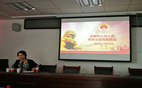 短暂茶歇后,大会进入主题报告环节。首先西安市检察院姜杰主任做了题为《非国有公司人员刑事法律风险防范》的主题报告,姜主任主要介绍了非国有公司人员常见的四种刑事犯罪类型:职务侵占罪、侵犯商业秘密罪、贪污罪、非国家工作人员受贿罪。她结合真实案例生动形象地为大家讲述了哪些行为会在司法实践中被认定为犯罪,为非国有企业及其员工阐明了工作中可能触碰到的刑事法律风险。最后她提醒企业特别注意商业秘密风险防范,并告诫大家珍惜自由,切莫触碰法律底线。