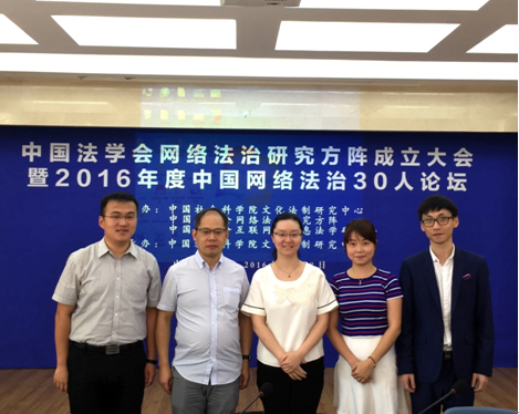2016年8月28日,中国法学会网络法治研究方阵举行成立大会暨2016年度中国网络法治30人论坛。西安交大信息安全法律研究中心成功入选中国法学会“网络法治研究方阵”理事单位,成为全国五家理事单位之一。校社科处处长贾毅华、学院丁卫副院长受邀参加成立大会并致辞,信息安全法律研究中心副主任王玥副教授带领研究团队成员博士生马宁、党家玉参加论坛。开幕式由中国社科院文化法制研究中心主任、中国法学会互联网与信息法学会副会长周汉华主持。中国法学会研究部主任李仕春、中国法学会副会长李林、中国信息通信研究院政策与经济研究所所长鲁春丛、中南大学法学院院长陈云良、西安交通大学社科处处长贾毅华、华东政法大学刑事司法学院副院长王永全分别作为方阵理事单位代表致辞。