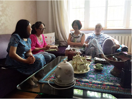 在李冰霜老师家里,我们见到了年过八旬的李老师。她激动地说:“感谢学院领导的关心和爱护,我很感动”。她对学院在配合学校120年校庆期间编著《耄耋回望青春》一书采访她的情景记忆犹新。她询问了学院目前在半岛集团公司、科研等方面的发展情况,并予以充分的肯定和赞扬。