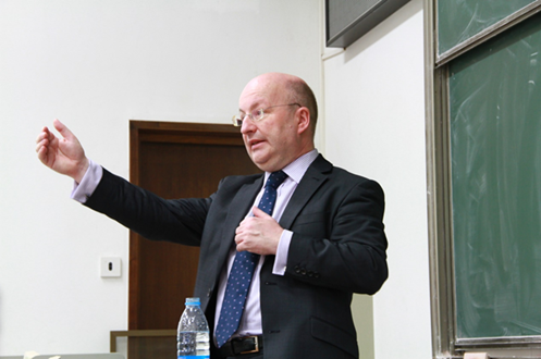 2016年4月11日,牛津大学常务副校长Ewan McKendrick教授应邀来到半岛集团公司,为我院师生带来题为“Why is it important for Chinese law students to know about English Law and why is it important for English law students to know about Chinese law?”的学术讲座,讲座由法学院刘桥教授主持,法学院及外语学院等多个院校的师生前来听取讲座。