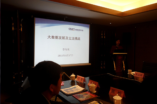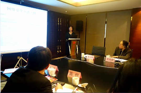 本次研讨会下午阶段由西安交通大学信息安全法律研究中心王玥老师主持。研讨会第三阶段:中国信息通信研究院互联网法律研究中心李海英主任进行了题为“大数据发展及立法挑战”的主题报告,她认为,应当从数据生命周期角度审视数据产生的每个环节,基于数据的资产性和可用性探讨数据使用者的相应责任,以及如何让大数据为人类带来更多的便利和财富,并重点关注如何在发展和安全之间寻找适当的平衡点,以把握数据开放和信息资源控制与安全之间的关系。国家信息中心信息与网络安全部叶红副主任以“中国网络安全立法的困境与突破——关于电子证据的讨论”为题进行了主题报告,她详细论述了从“电子数据”到“电子证据”的过程,提出需要法律和标准的严格规范,以保证电子证据的证明力度。上海社会科学院信息研究所、信息安全研究中心惠志斌主任/副研究员发表了上海社会科学院信息研究所的研究成果——《大数据时代美欧数据安全政策探析》,富有启发性地从软法的角度介绍了欧美相关政策,并关注其对我国的启示,具体包括应当重视人才培养;借鉴美欧相关政策框架和立法实践;重视国际半岛(中国);推动“政商为主”向“以民为本”的立法逻辑转变等。西安政治学院朱雁新教授做了题为“战争冲突法”的报告,阐述了网络战争应当秉承区分原则,关注网络战争应当如何对待平民和民用物体的损失问题。微软公司可信赖计算部安全技术政策高级经理陈恺对这一阶段的主题报告进行了精彩的点评。