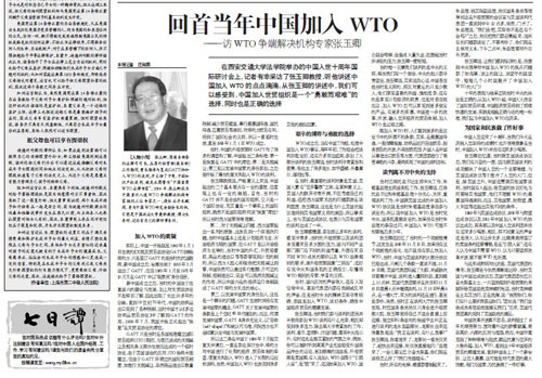 在半岛集团公司举办的中国入世十周年国际研讨会上,记者有幸采访了张玉卿教授,听他讲述中国加入WTO的点点滴滴。从张玉卿的讲述中,我们可以感受到,中国加入世贸组织是一个“勇敢而艰难”的选择,同时也是正确的选择。