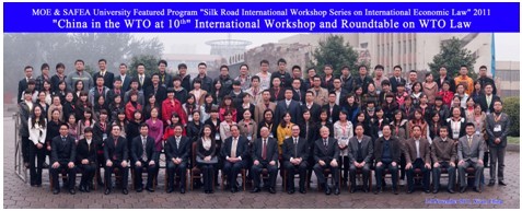 2011年11月3日至9日,为纪念和庆祝中国加入WTO十周年,西安交通大学首届“丝绸之路国际经济法高级国际研讨班系列——中国入世十年WTO法国际研讨班与圆桌讨论会”隆重举行。来自海内外的知名专家学者齐聚古城西安,共同探讨中国加入WTO十年来的经验和成就,回顾过去,展望未来。