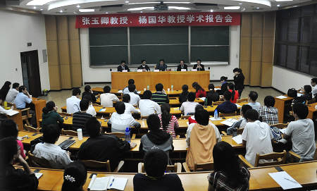 报告会高潮迭起,精彩纷呈,原定10:30 结束的会议一直延续到将近11:30才结束。张、杨两位司长表示,交大法学院作为全国最年轻的法学院,发展之快令入瞩目;同学们提出的问题的层次和水平,以及好学上进的精神,给他们留下了极为深刻的印象。那位来自外地的考生表示,听了报告后觉得交大果然名不虚传,更加坚定了报考交大的信念。还有的则表示报告会大大增强了他们对国际法特别是国际经济法的兴趣,有的还提出了举办“模拟WTO法庭”的创想,得到了二位司长的高度认可和赞扬。