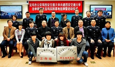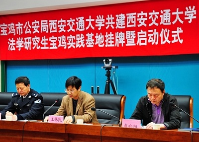 4月10日,我院与宝鸡市公安局“共建西安交通大学法学研究生宝鸡实践基地挂牌暨启动仪式”在宝鸡举行。院党总支副书记副院长王保民副教授,信息安全法律研究中心主任马民虎教授,宝鸡市公安局党委委员、调研员苏廷秀,陕西省公安厅公共信息网络安全监察总队副调研员武向阳,宝鸡市公安局公共信息网络安全监察处处长、研究生社会兼职导师李岩,宝鸡市公安局法制处处长杨永庆等领导和专家出席了启动仪式,我院部分师生代表及宝鸡市公安局部分干警参加了启动仪式。