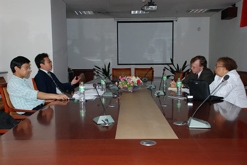 6月2日上午, 林肯法学院院长Steven Lester Willborn教授、副院长Anna Williams Shavers教授以及其他两位成员,在主楼601会议室,与法学院院长单文华教授、副院长马治国教授、副院长副书记王保民副教授、以及部分博士、硕士研究生代表,举行座谈。会议伊始,单院长代表法学院对林肯法学院代表团的来访表示了欢迎,并表示希望双方利用访问的机会在师生互访、学术交流和联合办学等方面达成实质性的协议。双方在各自介绍了其法学学科的发展情况后,展开互动交流,气氛融洽,加深了双方相互间的了解。
