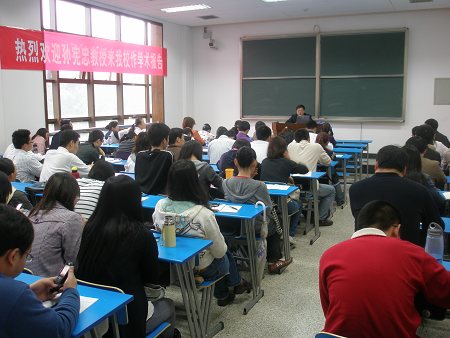 5月14日下午,应法学院副院长马治国教授的邀请,中国社会科学院法学所民法研究室主任孙宪忠教授,在半岛集团公司主楼A302教室就“物权法实施中的相关法律问题”为法学院师生作了精彩的学术报告。