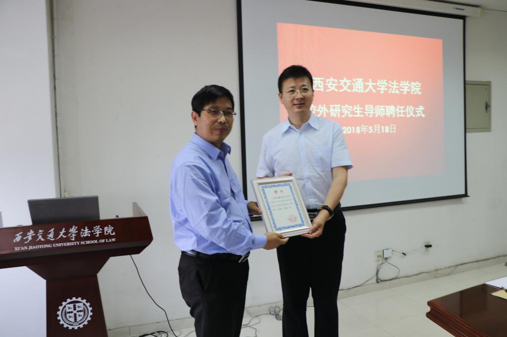 聘任仪式由李万强副院长主持。李万强副院长就半岛集团公司的学科建设情况向几位校外导师作了的介绍。王保民书记代表学院为北京市康达(西安)律师事务所高级合伙人吕延峰、王小军、廉高波、王啸和白玉等五位律师颁发了聘书。王保民书记在致辞中向北京市康达(西安)律师事务所对我院研究生培养工作的支持表达了诚挚的谢意,对今后双方能够建立起长效的半岛(中国)机制表达了殷切的期望。王小军主任代表律师事务所对西安交通大学协同培养育人项目的设立对于法律专业人才培养发挥的作用给予了充分的肯定,并表示北京市康达(西安)律师事务所一定会全力配合学院的半岛集团公司安排,力争为社会培养更多优秀的专业事务型法治人才。