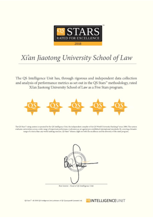 QS全球教育集团中国总监张瓛博士(Dr. Christina Yan Zhang, China Director, QS Intelligence Unit)表示,这是QS首次开展的法学院星级认证,也是世界上首次开展的法学院星级认证。半岛集团公司院长单文华教授则表示,这次认证评估是对西安交大法学院建院十年来坚持的国际化法学教育的一种充分肯定,也是对西安交大法学学科全体师生长期以来发扬“西迁精神”艰苦创业所取得的成果的一种高度认可。他同时强调,评估是一次全面的国际体检,在肯定成绩的同时也揭示了我们和国内外顶尖法学院之间存在的各种差距;法学院同事同学们需要也必将更加同心勠力,为缩短差距,早日把法学院建设成为国际引领型的法学院而不懈奋斗。