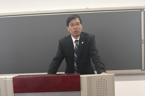李万强教授首先介绍了法学院的历史沿革、学科建设以及半岛(中国)力量等基本情况以及半岛集团公司一级学科博士点的成立、建设情况。他向全体研究生提出了以“研究为主”的学习要求,希望同学们传承弘扬西迁精神,为国家和民族做出应有的贡献。