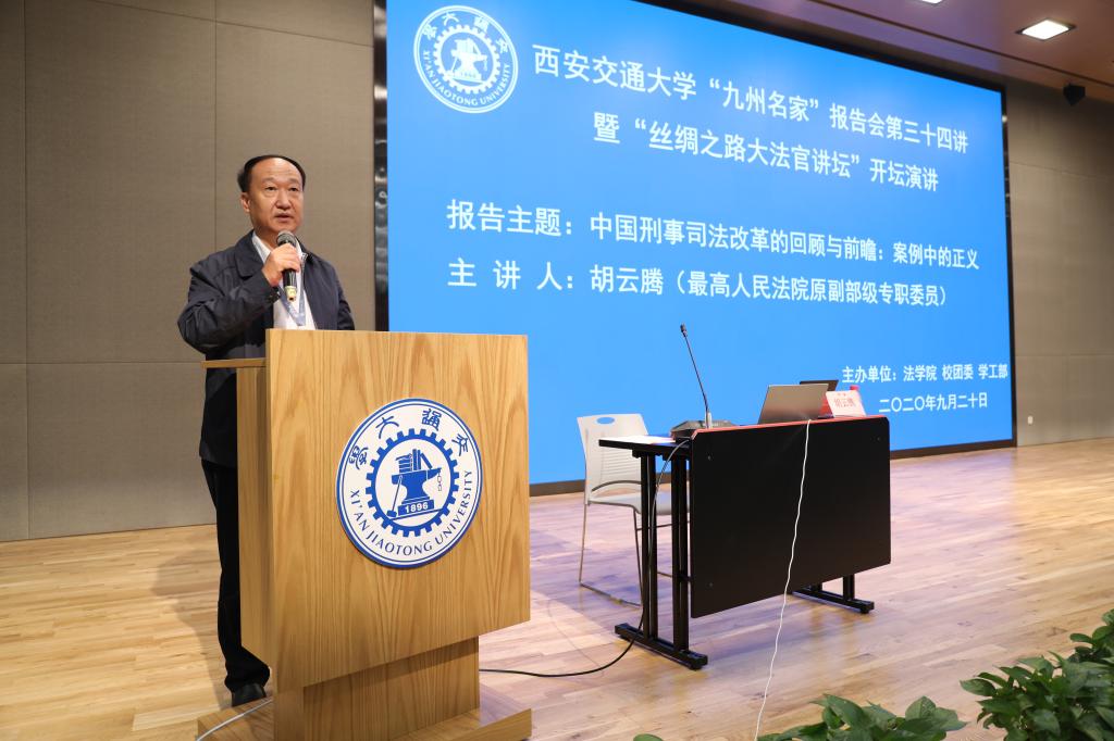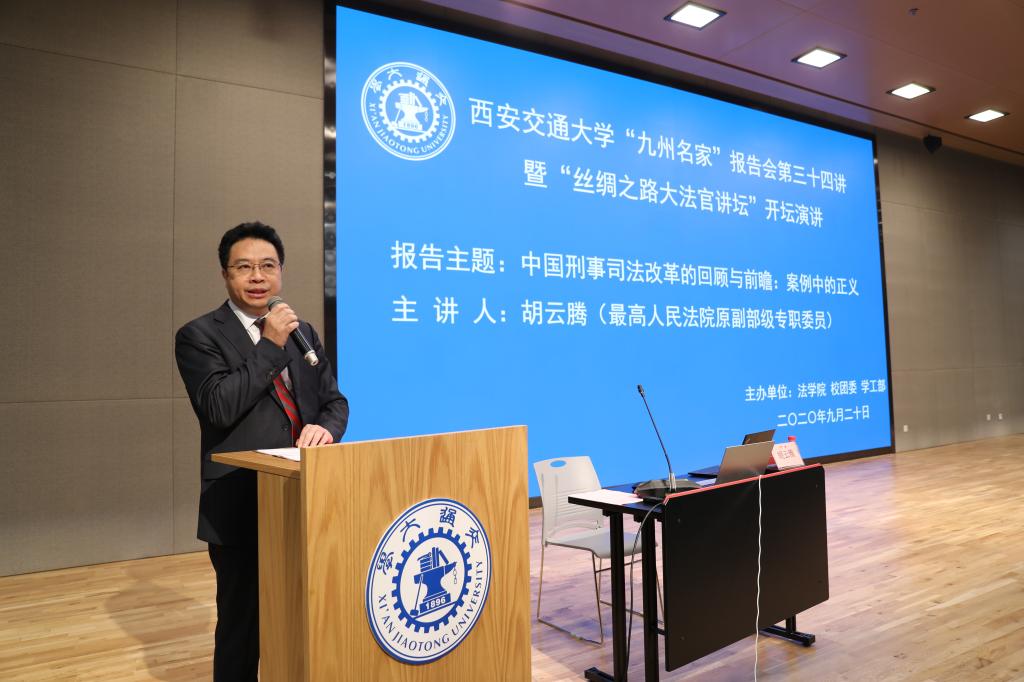 2020年9月20日,最高人民法院原副部级专职委员胡云腾大法官在中国西部科技创新港开坛论道,以《中国刑事司法改革的回顾与前瞻:案例中的正义》为题,畅谈中国司法改革40余年变化与成就。王树国校长在涵英楼11楼会见了胡云腾大法官。校党委副书记赵昌昌出席了报告会并致辞,校团委书记苏翔,陕西省律师协会会长韩永安,贸仲丝路中心秘书长助理蒋红梅,法学院副院长李万强,法学院副院长丁卫老师一并出席报告会。报告会由法学院院长兼国际教育学院院长单文华主持。