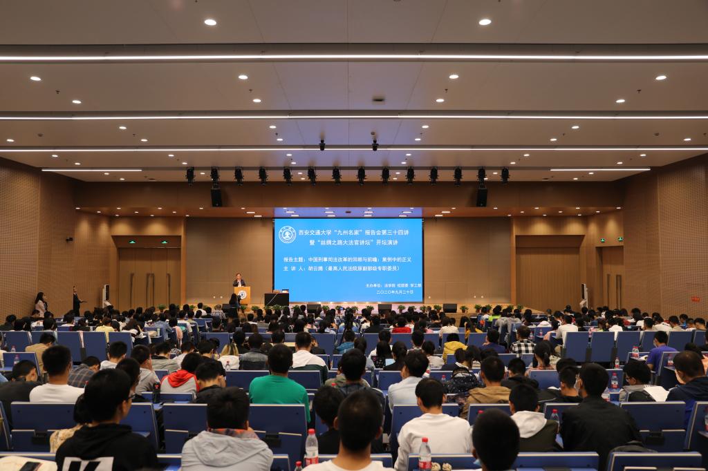 本次报告会是西安交通大学“九州名家”报告会第三十四讲,也开启了“丝绸之路大法官讲坛”的首场报告,亦是西安交通大学“百场报告”和中国西部科技创新港“科创月”的系列活动之一。本次报告由法学院主办,校团委、学工部协办。报告会还吸引了陕西省律师协会、中国国际经济贸易仲裁委员会丝绸之路仲裁中心、西北政法大学等校外单位的法律界人士广泛关注和积极参与,与会嘉宾及全校多学科师生共计500余人到会聆听并参与互动。