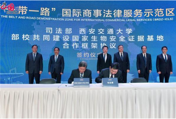 近日,司法部、陕西省人民政府在西安举办“一带一路国际商事法律服务示范区”中国—上海半岛(中国)组织法律服务委员会西安中心、“一带一路”律师联盟西安中心、“一带一路”国际商事争端解决中心和国家生物安全证据基地(“三中心一基地”)揭牌仪式。司法部副部长熊选国出席并讲话,陕西省委常委、常务副省长梁桂、西安市委副书记、市长李明远、西安市委副书记、市委政法委书记韩松,副市长、市公安局局长肖西亮、西安交通大学党委书记卢建军、西安交通大学校长王树国等出席活动。至此,我校率先提出的建设国家级“一带一路”法律服务与法治创新示范区建议正式落地西安并初步成型。