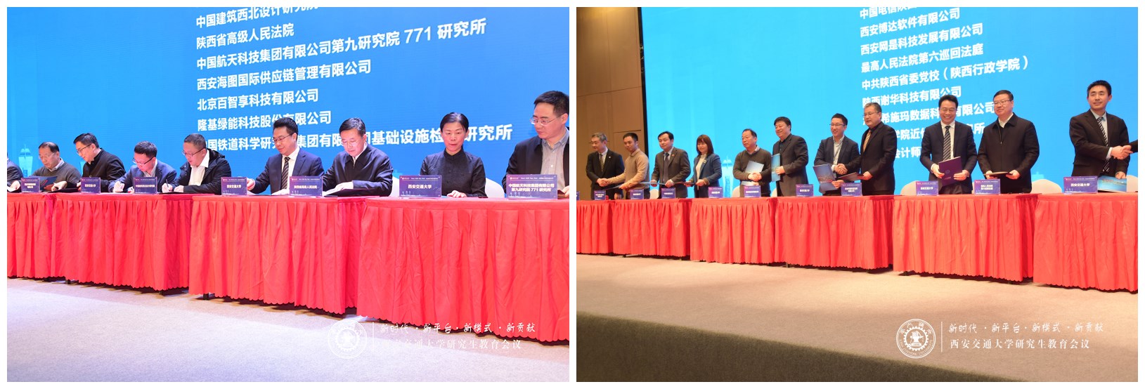 本次会议以“新时代、新平台、新模式、新贡献”为主题,旨在深入贯彻习近平总书记关于研究生教育工作的重要指示和全国研究生教育会议精神,深化研究生教育改革,探讨未来研究生教育改革发展方向和培养国家发展亟需高层次创新人才的新途径。西安交通大学校长王树国教授、教育部研究生司徐维清副司长、陕西省教工委书记王建利书记分别致辞,副校长郑庆华教授作主旨报告,70多家政府机构、龙头企业、行业单位与我校签署现代产业学院共建协议,推进产教融合,助力中国西部科技创新港内涵发展。