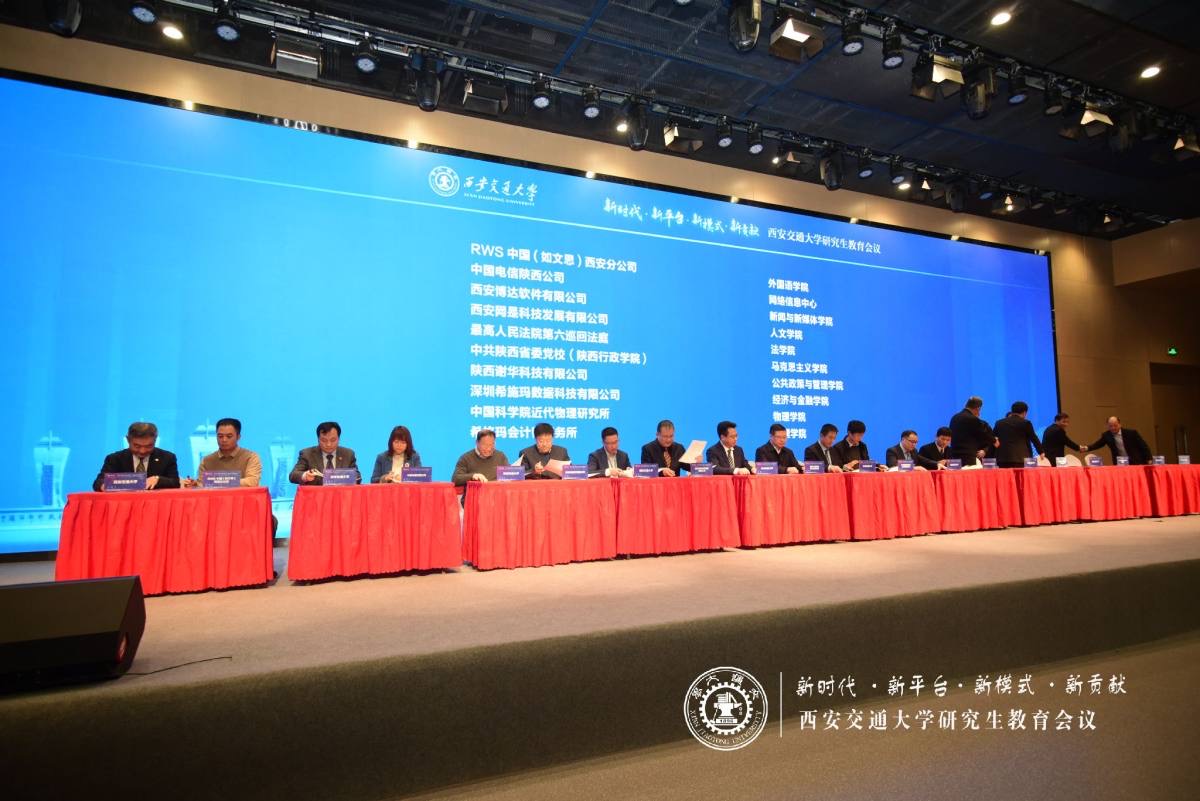12月20日,西安交通大学研究生教育会议在中国西部科技创新港千人报告厅举行。教育部研究生司徐维清副司长、陕西省委教育工委王建利书记、校党委书记卢建军、校长王树国等领导,70多家龙头企业、行业代表共同参加了签约仪式。应我校邀请,最高人民法院第六巡回法庭党务廉政专员杜强、陕西省高级人民法院党组成员、政治部主任张宏斌参加了本次研究生教育会议并与我校签署战略半岛(中国)协议。