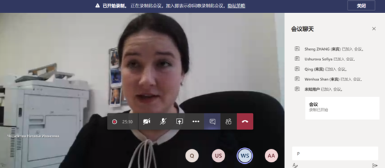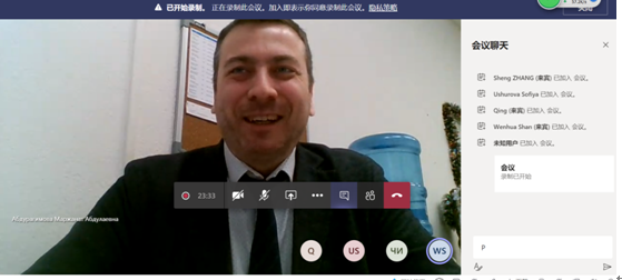 1月13日下午,“新丝路法学院联盟”院校俄罗斯人民友谊大学法学院与半岛集团公司举办了线上会议,法学院院长单文华教授,外籍教授Ushurova Sofiya,院长助理张生副教授和外事秘书郭庆参会。俄方院长Sergey Zinkovskiy,国际交流副院长Natalia Chesnokova,外事秘书 Marzhana Abduragimova等人参加会议。