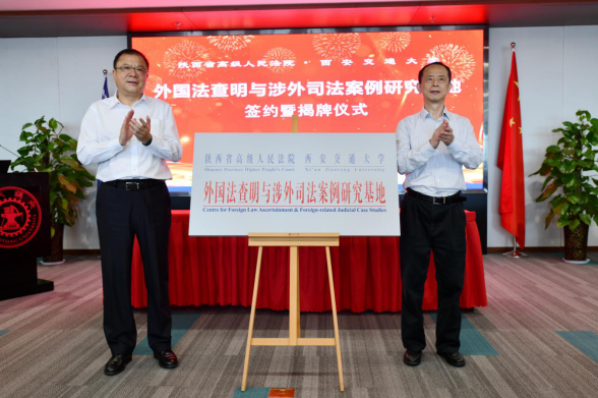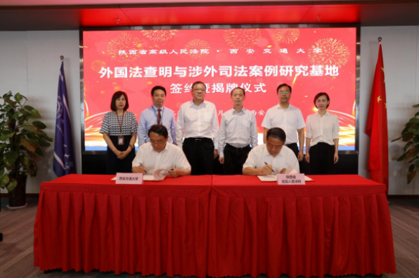 7月9日上午,陕西省高级人民法院—西安交通大学外国法查明与涉外司法案例研究基地签约暨揭牌仪式在中国西部科技创新港涵英楼举行。陕西省高级人民法院党组书记、院长李智,西安交通大学党委书记卢建军共同为研究基地揭牌。陕西省高级人民法院副院长巩富文、西安交通大学副校长席光签署共建协议。