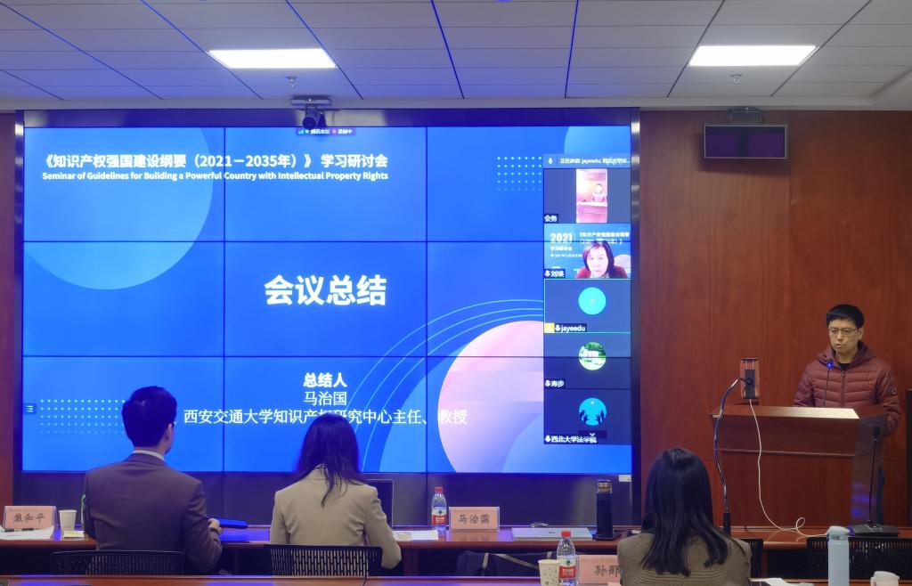 11月20日上午,为深入贯彻学习《知识产权强国建设纲要(2021—2035年)》《“十四五”国家知识产权保护和运用规划》等重要政策文件精神,论证知识产权学科和知识产权人才培养模式建设,研讨新形势下如何推进学科高质量发展,西安交通大学知识产权研究院举办了《知识产权强国建设纲要(2021—2035年)》学习研讨会。本次会议由西安交通大学和陕西省法学会主办,陕西省法学会科学技术法学研究会、西安市法学会知识产权法学研究会、西安交通大学知识产权研究中心、西安交通大学知识产权研究院承办。会议在中国西部科技创新港举行,线上和线下来自知识产权法学界的著名专家学者、领导嘉宾、实务工作者以及在校师生等一百余人参与了本次研讨会。