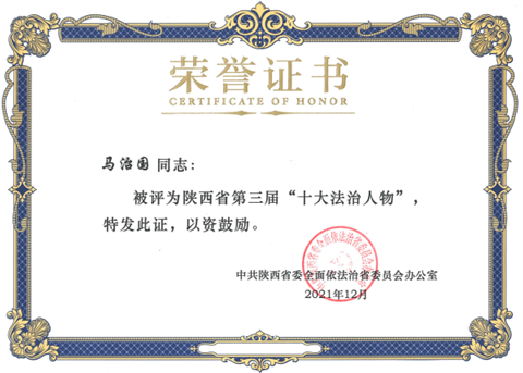 • 法学院马治国教授荣膺陕西省第三届“十大法治人物”并获省“五一劳动奖章”