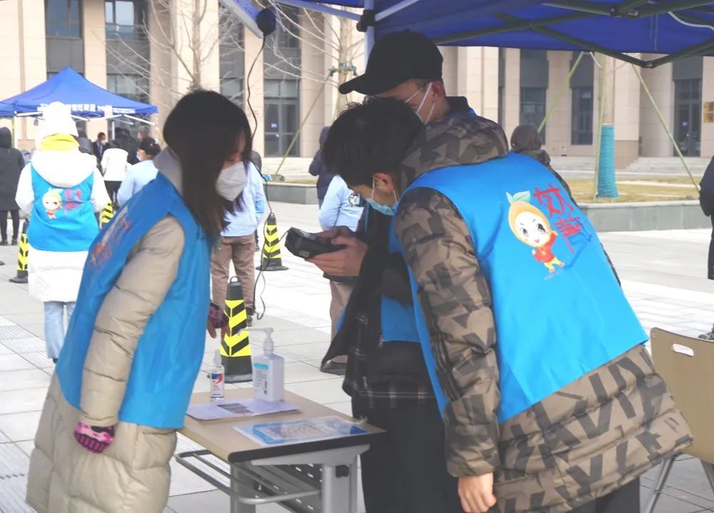 面对严峻的防控形势法学院紧急召集抗疫服务先锋队,同学们积极响应,在短短数小时内便召集了60多位志愿者,展现出了坚韧不拔、甘于奉献的精神。12月30日清晨8点,法学院抗疫服务先锋队志愿者在带队老师的带领下,进行今日全员核酸检测工作准备。本次活动的共42位志愿者参与。清晨八点的创新港,寒风阵阵,但志愿者精神抖擞,一丝不苟。那一抹交大蓝点亮了校园。