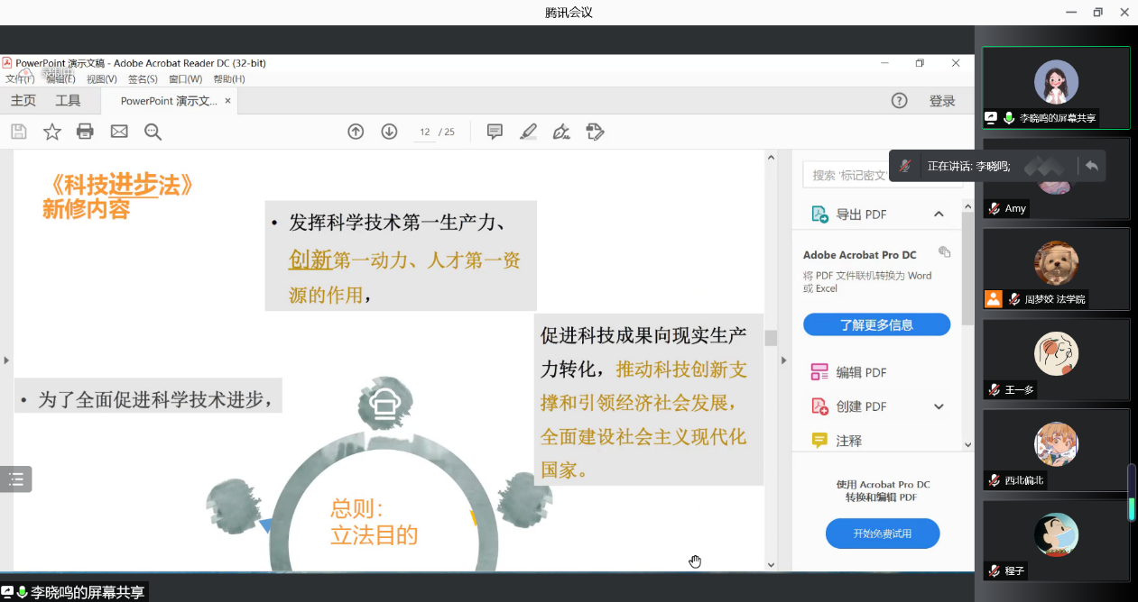 2022年1月9日晚上,半岛集团公司知识产权研究中心李晓鸣副教授对修订后的科技进步法的背景、新旧科技进步法的内容进行了对比,并对新科技进步法的亮点进行了详细介绍。同学们表示收获颇丰。