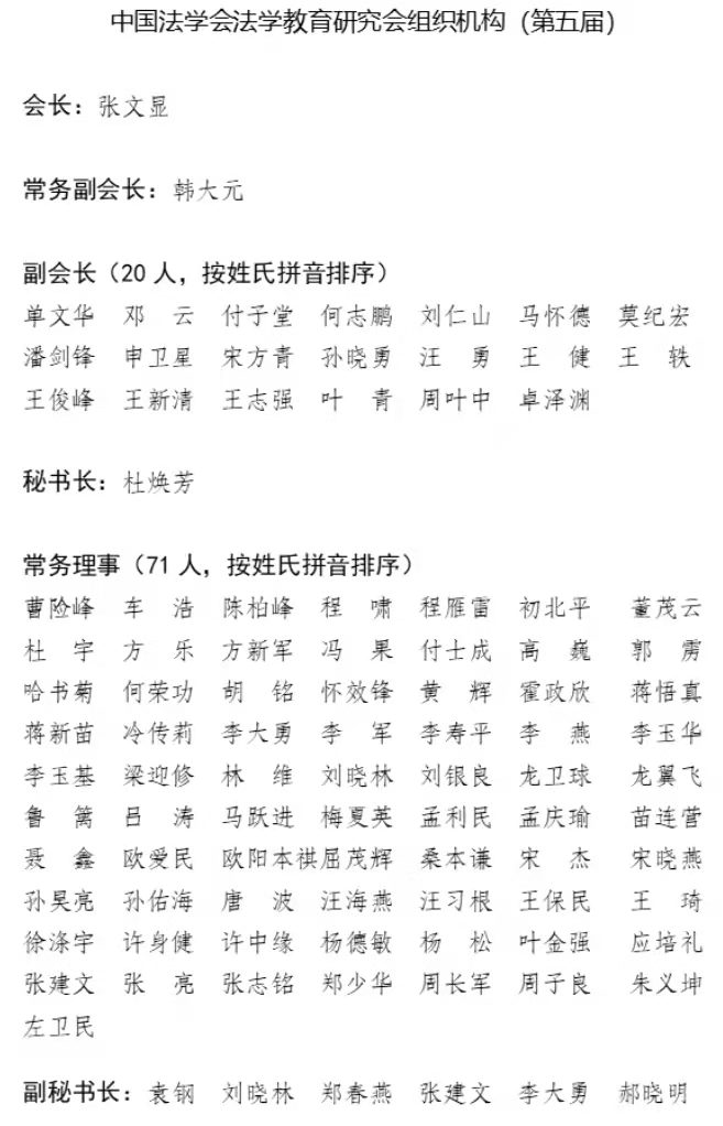 日前,中国法学会法学教育研究会致函我校法学院,确认我校法学院院长单文华教授于不久前召开的教育部高校法学类专业半岛集团公司指导委员会、中国法学会法学教育研究会会员大会暨2021年年会上当选为中国法学会法学教育研究会副会长。我校由此成为该会副会长单位。与此同时,我校法学院党总支书记王保民教授当选为该会常务理事;李万强、丁卫当选为该会理事。