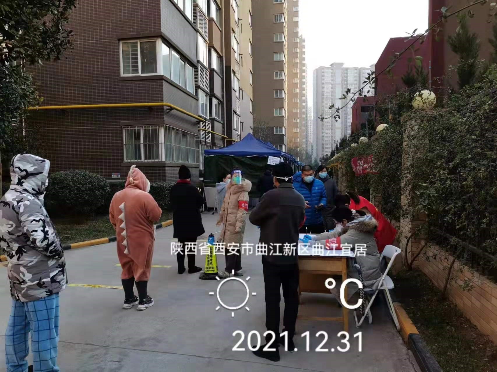 当看到社区招募抗疫志愿者的通知时,法学院徐建楠老师毫不犹豫地报了名。但由于她所居住的曲江宜居小区居民志愿服务热情很高,她一直在后备志愿者之列。2021年12月31日下午,小区再次通知进行全员核酸检测,徐建楠老师所在的楼栋恰好在第一批采样名单。下午2:50,咽拭子采样工作开始,但采样工作进展缓慢,似乎还处于调试阶段。完成采样后,徐建楠老师找到下沉社区的工作人员,询问是否需要帮忙。当对方得知她已报名加入志愿者后,又问她“有没有24小时核酸阴性证明?”“是不是党员?”徐建楠老师一一给出肯定的答复。之后她便戴上了防疫袖标、N95口罩、医用外科手套等基础防护装备,与另一位志愿者一起负责登记、核对已采样人员信息,避免采样后人群聚集,同时方便社区下沉干部及时了解每栋楼居民的核酸采样情况,确保“全员核酸,不漏一人”。直到晚上8点左右,小区核酸采样工作才宣告结束。