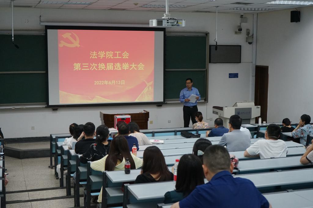 2022年6月13日下午,法学院在兴庆校区主D-106教室召开全院教职工大会,圆满完成法学院第三届工会委员会选举、西安交通大学第十一届教代会暨第十六届工代会代表选举以及西安交通大学第十六届工会委员会委员候选人提名推荐等工作。会议由法学院党总支书记王保民主持。