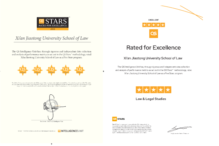 2018年起,学院获QS五星级法学院国际认证