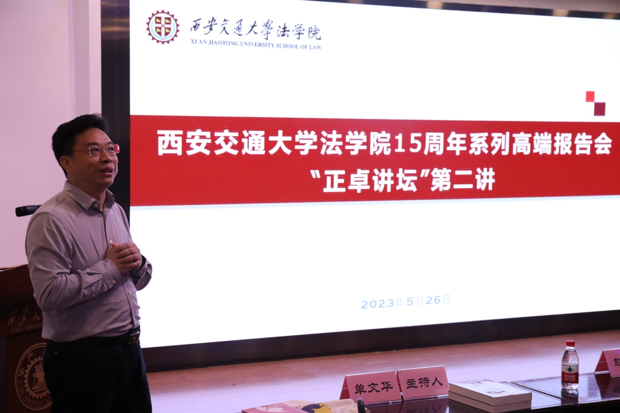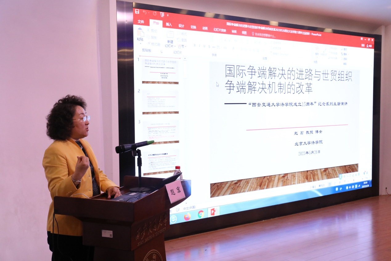 5月26日,世界贸易组织上诉机构前主席、北京大学法学院赵宏教授受邀到访西安交通大学,于钱学森图书馆星空报告厅作“国际争端解决的进路与世贸组织争端解决机制改革”专题学术报告。本次报告是纪念我校法学院建院15周年系列高端报告会“正卓讲坛”之第二讲,是法学院践行“四个一百”专项育人行动,培养新时代涉外法治人才的重要学术活动之一。西安交通大学校长助理、法学院院长单文华教授主持报告会。
