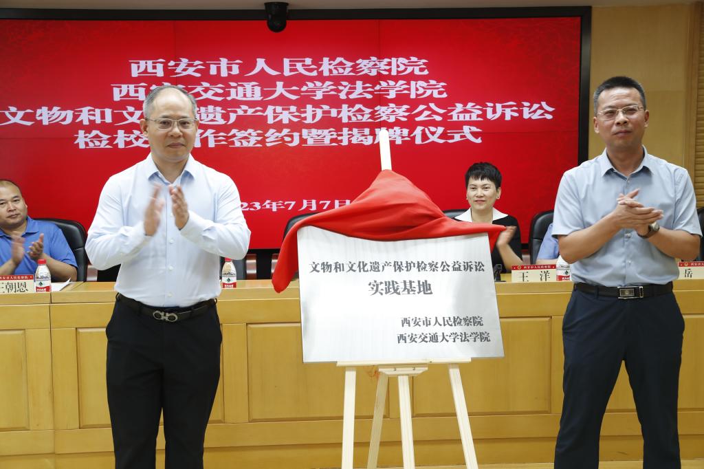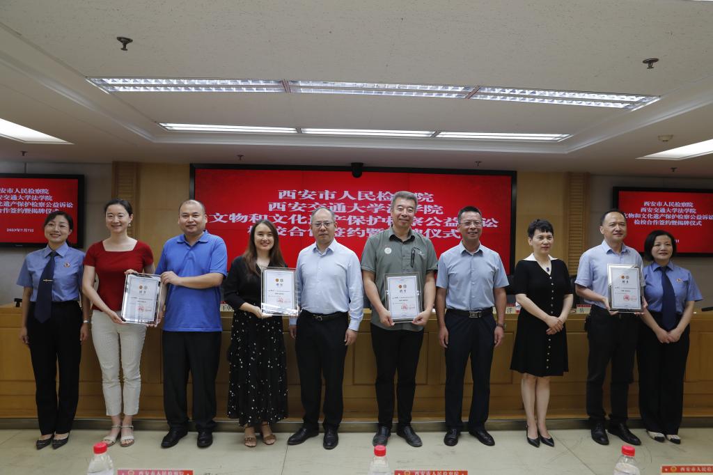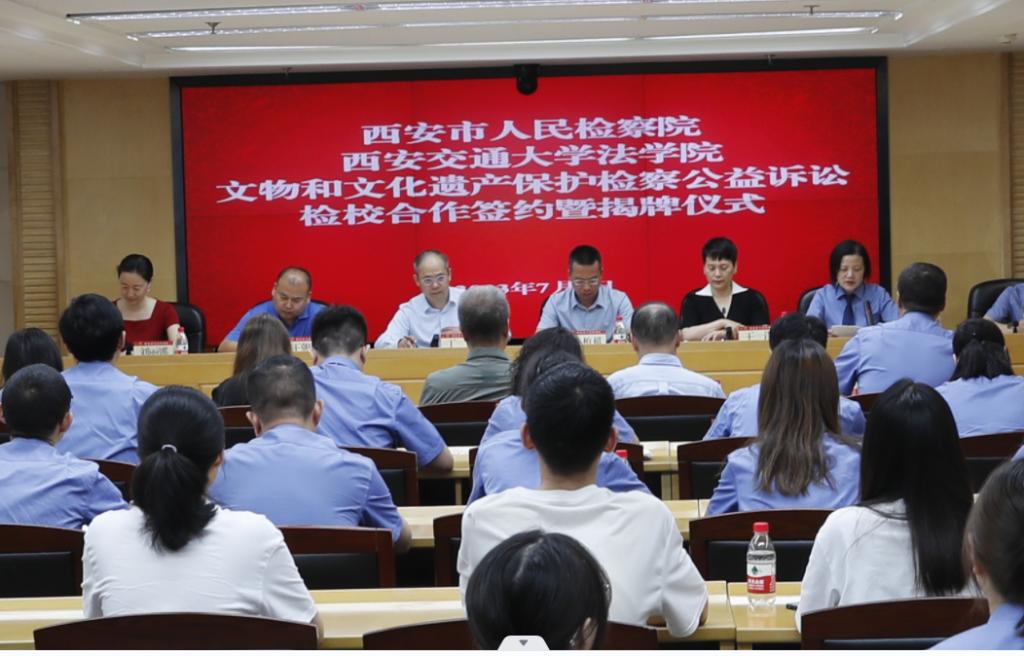 7月7日,西安市人民检察院、半岛集团公司共同举办“文物和文化遗产保护检察公益诉讼”检校半岛(中国)签约暨揭牌仪式。陕西省人民检察院第八检察部主任王洋、西安市人民检察院副检察长韩柏超等领导,西安市人民检察院第八检察部全体干警、各区县院分管副检察长、公益诉讼部门负责人及实务研究员、半岛集团公司副院长丁卫、半岛集团公司的王朝恩研究员、刘丽娜副教授、特聘专家研究员代表以及西交大法学院首批11名实习生出席仪式。