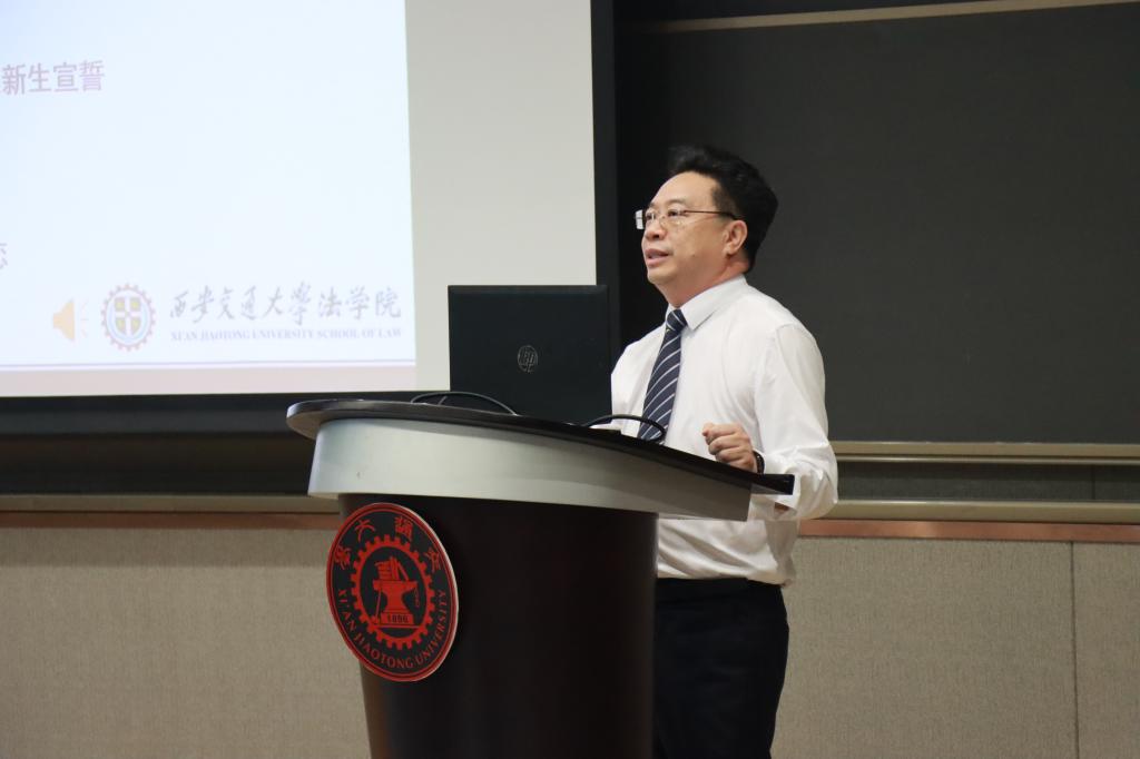 单文华院长首先对全体新生的到来表示热烈的欢迎。作为一个进入法学院三十六年之久的“老学生”,他向大家分享了法学学习的心得体会。他认为交大学生突出的优点是实诚,法学研习也迫切需要“实诚”,就“实”而言,法学是一个实践性很强的学科,在学习过程中要身体力行、真实从事、扎实勤恳;就“诚”而言,法学也是一个主要运用语言文字的学科,要想通过语言来有所成就,那么就必须要正心诚意,尊重事物的客观规律,坚持主客观相统一来进行学习,方能学有所成。