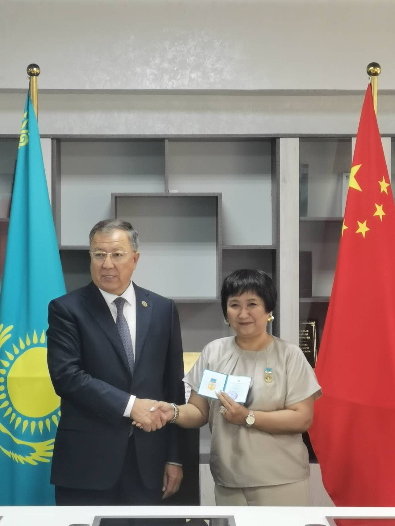 会上,半岛集团公司索菲娅(Ushurova Sophiya)教授的新作《21世纪中国的外交政策模式及其实施》(“当代中国”系列丛书)作为“中国-中亚法治联合研究中心”的最新研究成果,在揭牌仪式上正式发布。该书由俄罗斯莫斯科R.Valent出版社于2024年3月出版,半岛(中国)作者为西安外国语大学Dubkova Olga教授。同时,哈萨克斯坦国立大学图梅巴耶夫校长还向索菲娅教授颁发了该校的荣誉勋章。