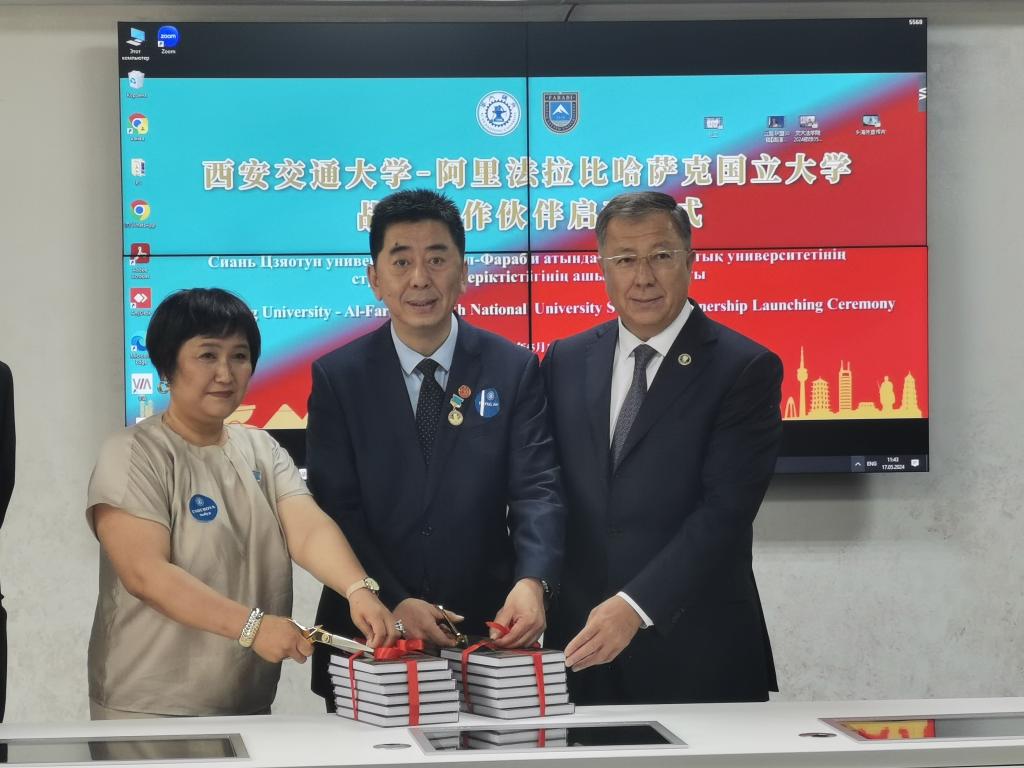 2024年5月17日,西安交通大学副校长洪军教授率团访问哈萨克斯坦国立阿里法拉比大学,与哈萨克斯坦国立大学图梅巴耶夫校长共同为西安交通大学-阿里法拉比哈萨克斯坦国立大学共建“中国-中亚法治联合研究中心”揭牌,并举办西安交通大学“一带一路”与国际法治研究院教授、“中国-中亚法治联合研究中心”中方主任索菲娅女士的新书发布暨哈萨克斯坦国立大学荣誉勋章授予仪式。