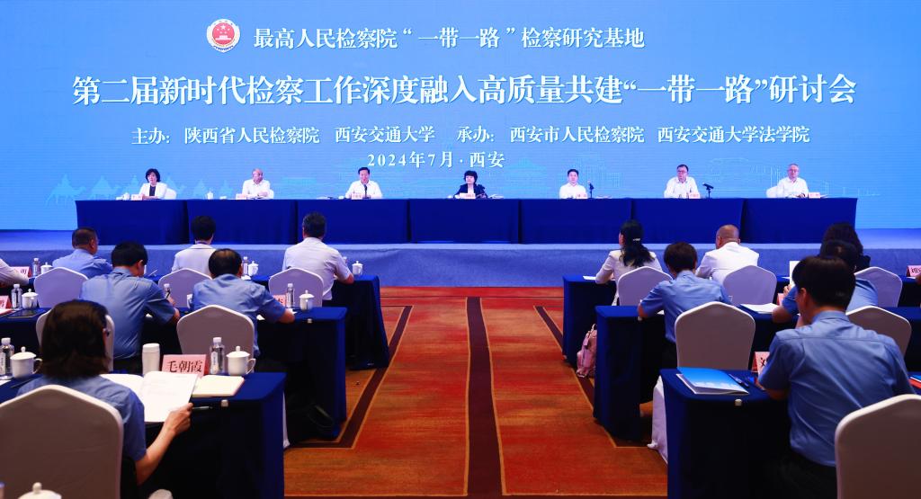 7月10日,最高检“一带一路”检察研究基地第二届新时代检察工作深度融入高质量共建“一带一路”研讨会在西安召开。最高检党组成员、副检察长葛晓燕,省委常委、省委政法委书记刘强,西安交通大学党委书记卢建军出席并讲话。省检察院党组书记、检察长王旭光主持开幕式。全国人大代表方燕、全国政协委员祁志峰、省人大代表杨艺媛、省政协委员刘国兴,最高检检察理论研究所所长郭立新、法律政策研究室一级高级检察官吴孟栓、国际半岛(中国)局二级巡视员龙梅,省委政法委副书记丁恒,西安市委副书记、市委政法委书记李婧等参加活动。
